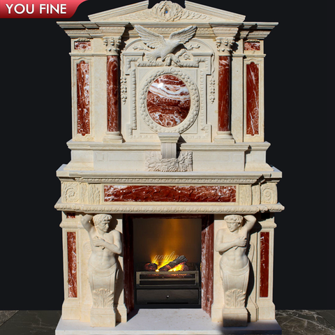 Meilleures ventes Cheminée classique en pierre naturelle avec statues de femme Marbre jaune