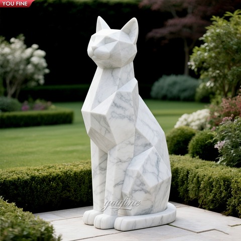 Ngoài trời Vườn trang trí nội thất tự nhiên bằng đá cẩm thạch trắng mèo tượng