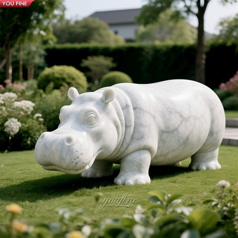Ngoài trời trang trí nội thất bằng đá cẩm thạch trắng hà mã vườn điêu khắc